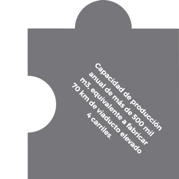 Capacidad de producción anual de más de 500 mil m3. equivalente a fabricar 70 km de viaducto elevado de 4 carriles