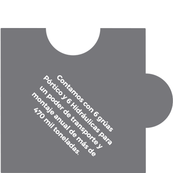 Contamos con 6 grúas pórtico y 6 hidráulicas para un poder de transporte y montaje anual de más de 470 mil toneladas.
